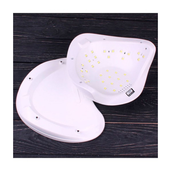 36 світлодіодів, простора робоча зона, призначена вільно сушити 5 пальців одночасно, інколи ж і двох рук. Дбайливо і поступово полімеризує абсолютно всі гель-лаки та гелі за лічені секунди. Лампа для манікюру має знімне дно та невелику вагу, що значно полегшує процедуру транспортування пристрою. SUN5 Plus це знахідка для майстра!